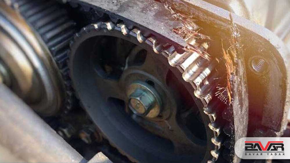 تسمه تایم وظیفه هماهنگی حرکت میل‌لنگ و میل‌بادامک را بر عهده دارد تا سوپاپ‌ها و پیستون‌ها به‌درستی با هم کار کنند. اگر تسمه شل شود یا دندانه‌های آن فرسوده باشند، موتور در حالت ایستاده دچار لرزش می‌شود و هنگام شتاب‌گیری ممکن است دور موتور نوسان داشته باشد. در موارد شدید، خرابی تسمه تایم حتی می‌تواند مانع روشن شدن موتور شود.
