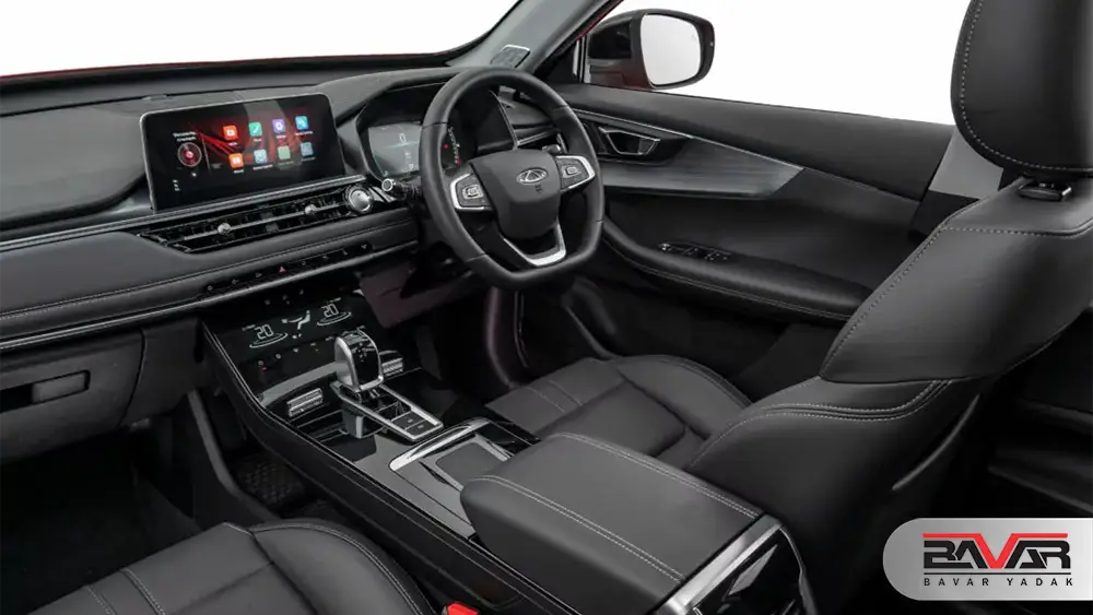 در کابین چری تیگو 7، استفاده از مواد باکیفیت مانند پلاستیک نرم و چرم مصنوعی، حس لوکس بودن و راحتی را القا میکند. صندلیهای جلو با قابلیت تنظیم برقی و فضای کافی، تجربه رانندگی دلپذیری ارائه میدهند. هرچند فضای عقب کمی محدود است، اما طراحی ارگونومیک کنسول و داشبورد به راننده حس راحتی و دسترسی آسان به تجهیزات را میدهد.