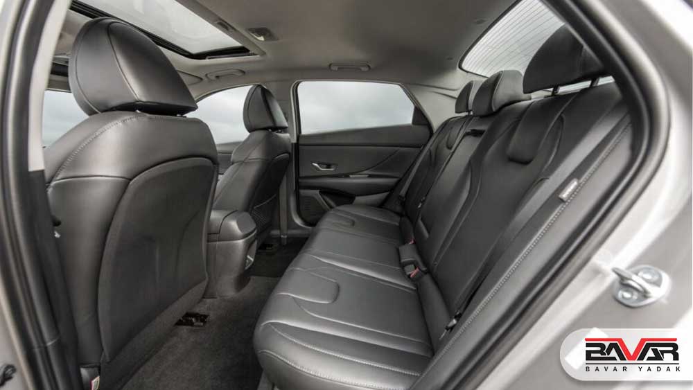 طراحی صندلیها بهگونهای انجام شده که در سفرهای طولانی نیز راحتی مطلوبی را فراهم کنند. فضای پا در ردیف جلو و عقب برای کلاس کامپکت بسیار مناسب است و بهویژه در نسخه هیبرید که با باتری در بخش زیرین طراحی شده، افت فضای داخلی به حداقل رسیده است.هیوندای همچنین با استفاده از نورپردازی محیطی (ambient lighting) در برخی نسخهها، امکان شخصیسازی فضای داخلی را برای راننده فراهم کرده که این ویژگی معمولاً در خودروهای ردهبالاتر دیده میشود.