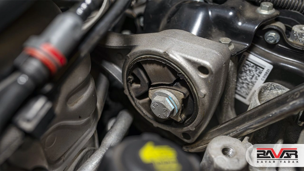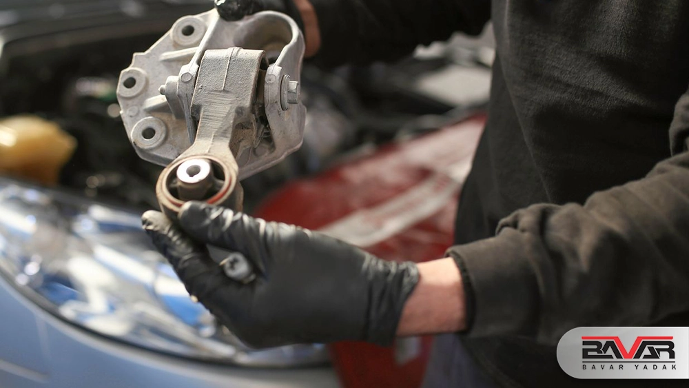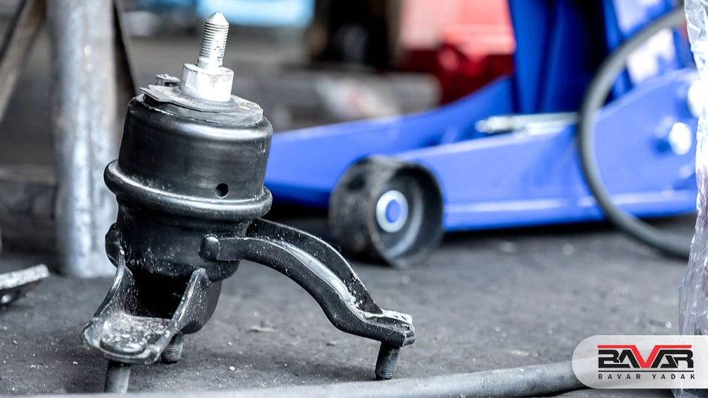 این قطعه وظیفه تحمل وزن موتور را بر عهده دارد، بنابراین هرگونه پارگی، نشتی روغن داخلی، نشست لاستیک یا خرابی بوش‌های فلزی باعث می‌شود که موتور از تعادل خارج شده و ضربه‌های ناگهانی یا لرزش شدید به کابین منتقل شود.