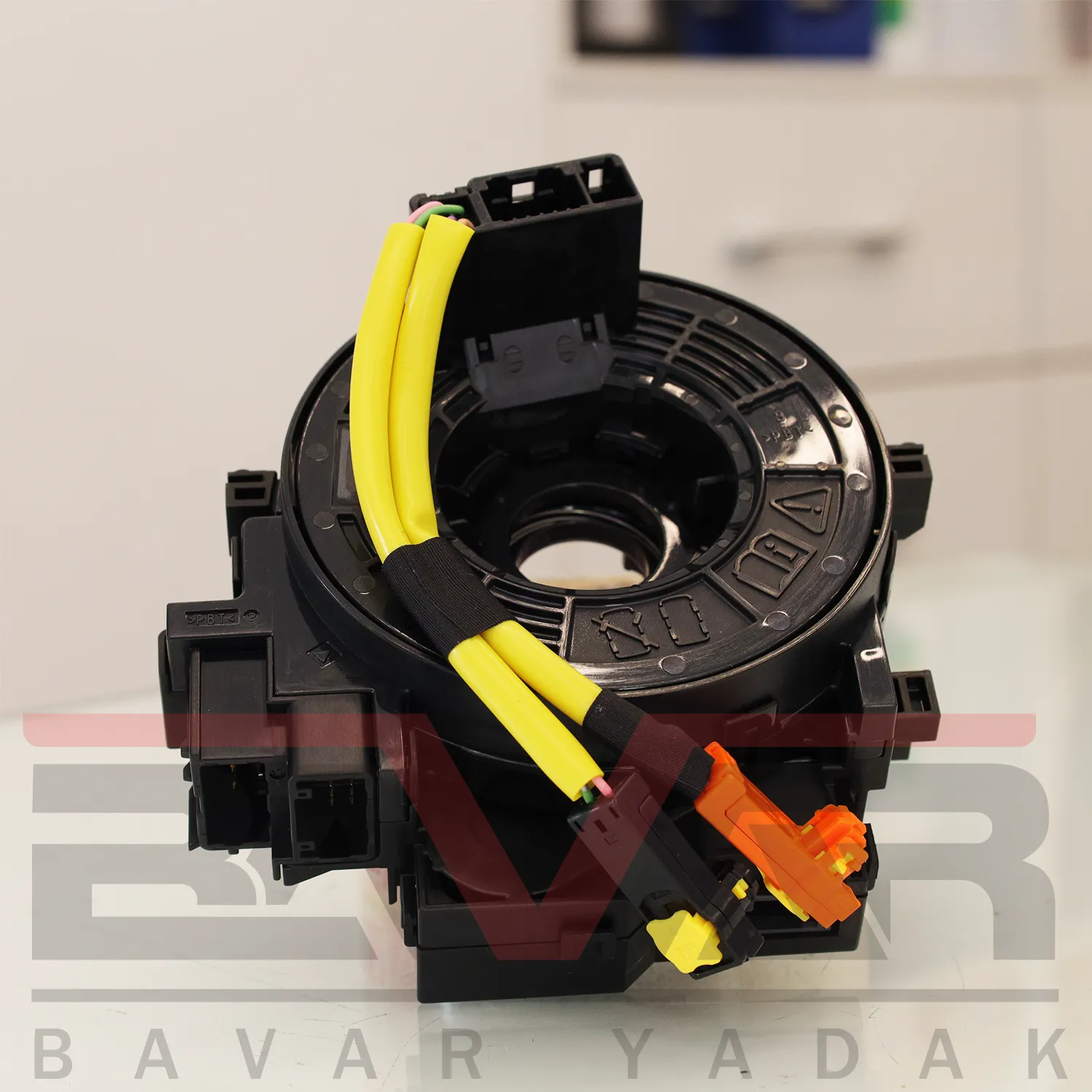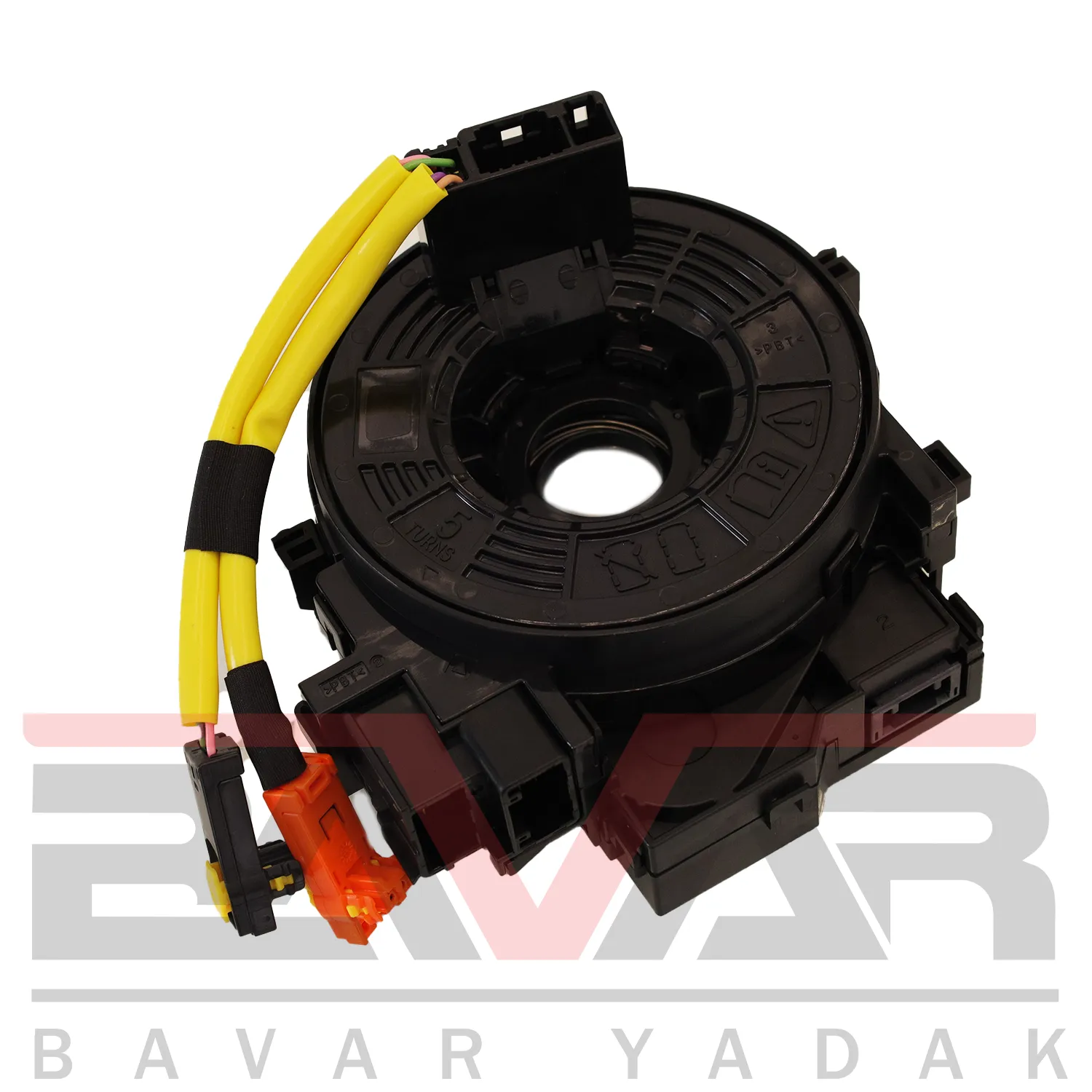 Spiral Cable (Clock Spring) اسپیرال کیبل وظیفه انتقال جریان برق و سیگنال بین فرمان و تجهیزات متصل به آن مانند ایربگ، بوق و کلیدهای کنترلی روی فرمان را بر عهده دارد. این قطعه به گونه ای طراحی شده که هنگام چرخش فرمان، ارتباط الکتریکی بدون قطعی حفظ شود و نقش بسیار مهمی در ایمنی خودرو، به خصوص عملکرد صحیح ایربگ، ایفا می کند.